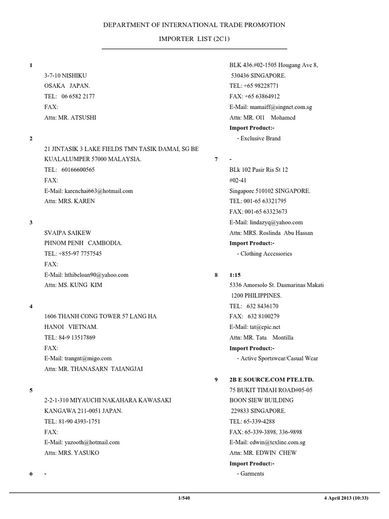 Department Of International Trade Promotion Importer List Compress Pdf Clothing Industry Clothing